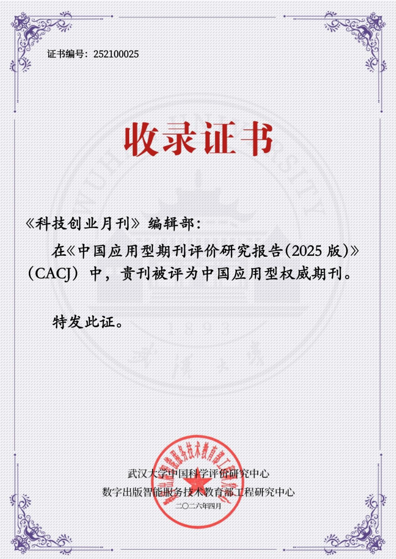 2026年4月10日,由中国科学学与科技政策研究会指导,武汉大学中国科学评价研究中心、数字出版智能服务技术教育部工程研究中心联合主办的《中国应用型期刊评价研究报告(2025版)》发布会正式召开。《科技创业月刊》杂志继入选“CACJ中国应用型核心期刊(2023版)”后,此次荣晋“中国应用型权威期刊”,评价等级实现从“核心”到“权威”的突破。